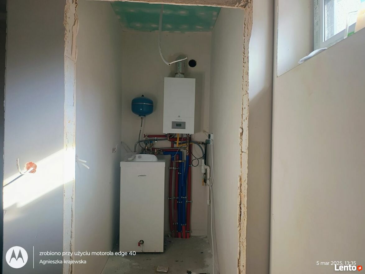 W całym domu ogrzewanie podłogowe. Do ogrzewania piec gazowy dwufunkcyjny.
